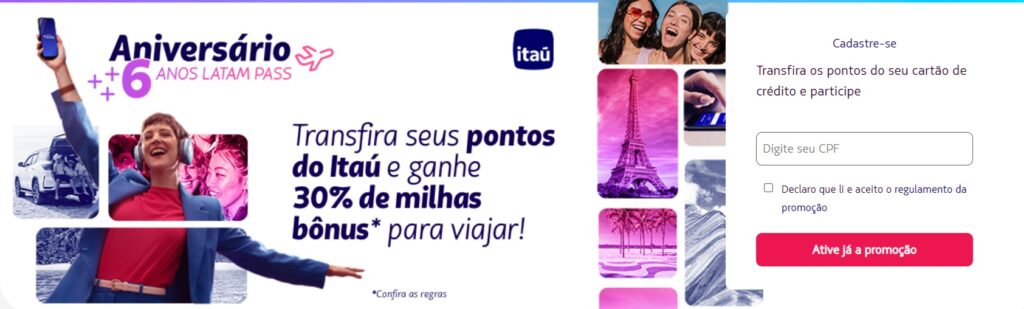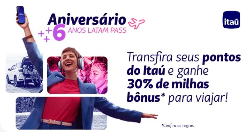 Transfira os pontos Itaú para Latam Pass e ganhe 30% de bônus