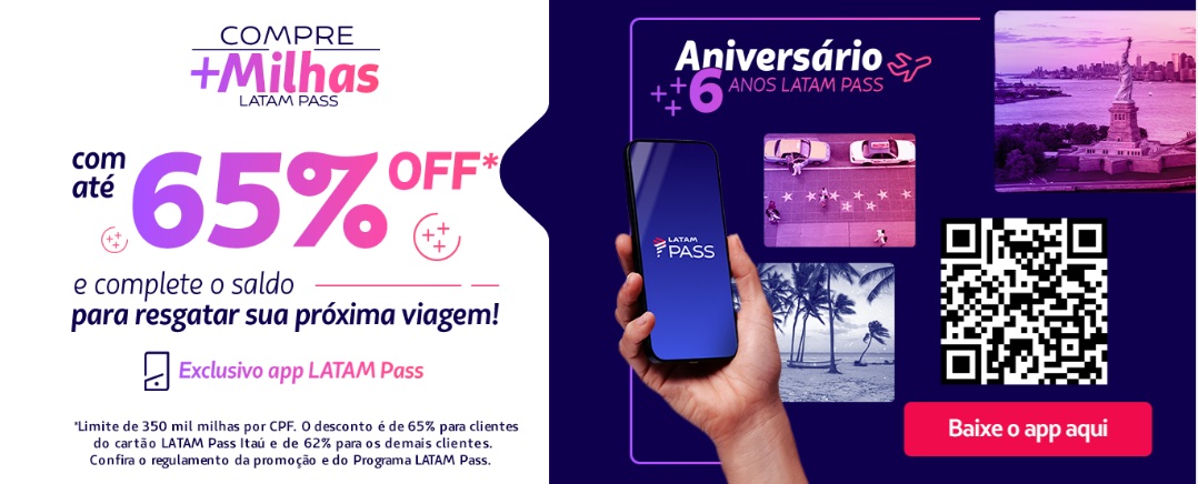 Oportunidade! Compre milhas Latam com até 65% de desconto saindo por R$ 24,50! Só pelo APP