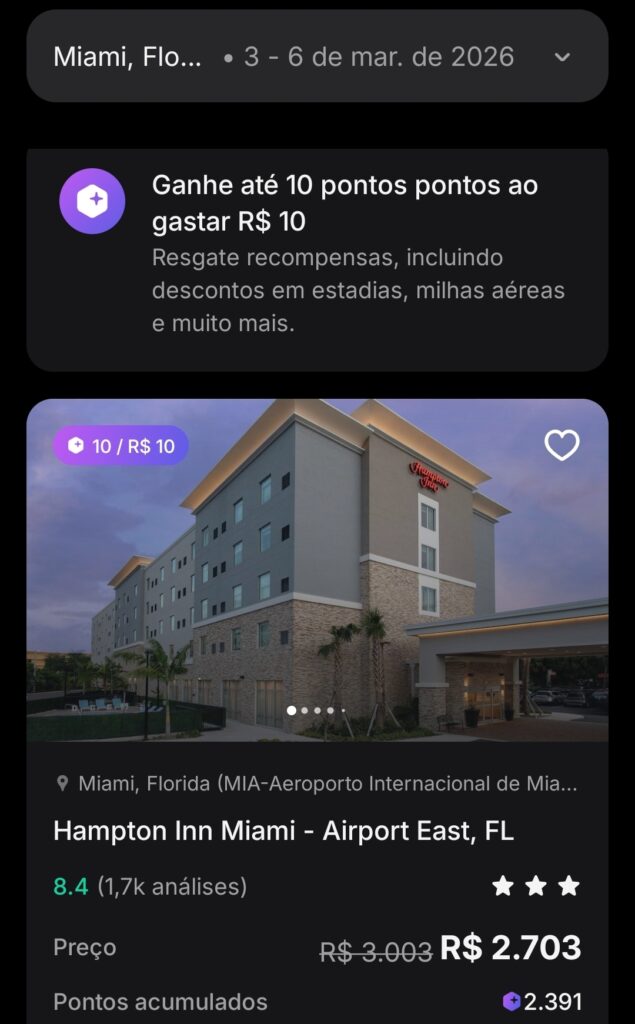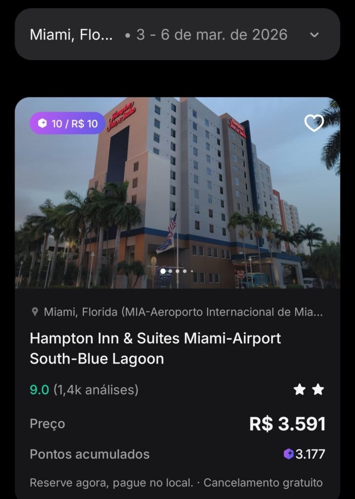 3º Escolha e pesquise se o hotel está com valor bom e com a jogada de ganho de milhas. 10 por 10, lembre-se 1.000 milhas RevPoints pode sair por R$ 51,00 na jogada