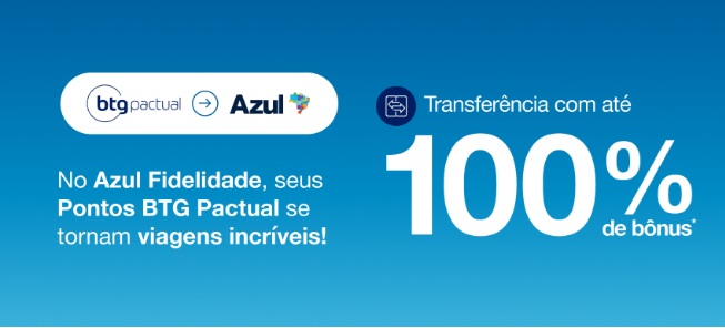 Transfira os pontos BTG para Azul Fidelidade com até 100% de bônus
