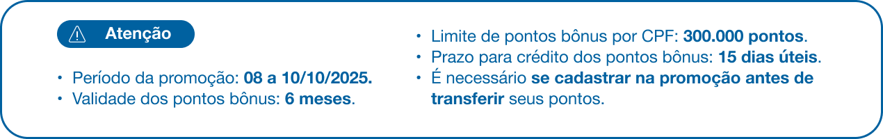 Após se cadastrar, transfira seus pontos até 10/10/2025.