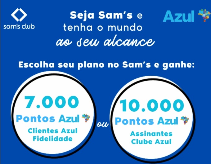 A parceria entre o Sam’s Club e o Azul Fidelidade (programa de fidelidade da Azul Linhas Aéreas) é uma das formas mais vantajosas de “comprar” milhas a baixo custo, especialmente para novos assinantes do Sam’s Club.