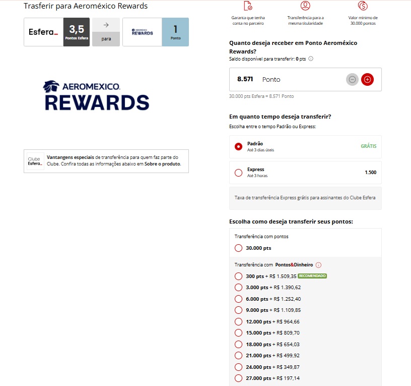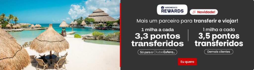 3,3 pontos Esfera por 1 milha Aeroméxico Rewards para clientes do Clube Esfera;