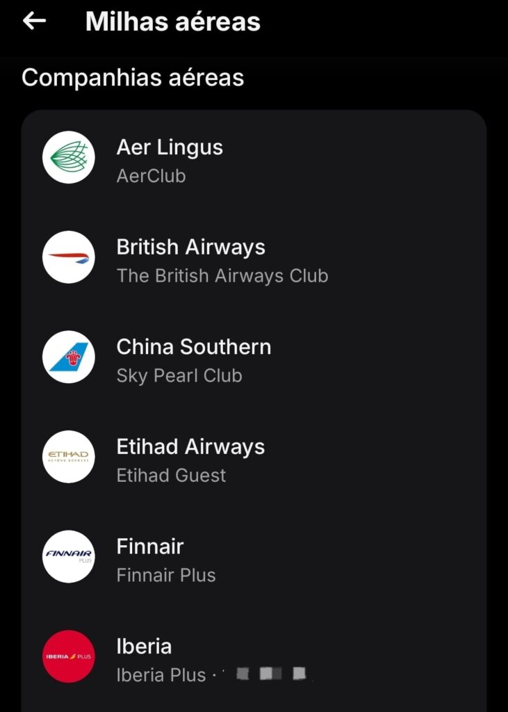 - Transferência para as Cias Aéreas: Aer Lingus (AerClub), British Airways (The British Airways Club), China Southern (Sky Pearl Club), Etihad Airways (Etihad Guest), Finnair (Finnair Plus), Ibéria (IbériaPlus), Qatar Airways (Privilege Club), Sas (EuroBonus), Tap Air Portugal (Tap Miles&Go), Turkish Airlines (Miles&Smiles), Vueling (Vueling Club).