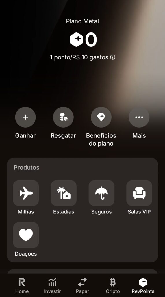 - RevPoints a cada R$ 10,00 = 1 ponto.