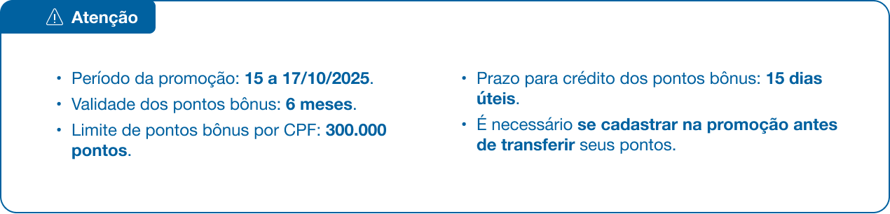 Após se cadastrar, transfira seus pontos até 17/10/2025.