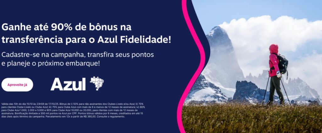 Acesse a página de transferência para o Azul Fidelidade e coloque quantos pontos deseja transferir. Atenção: o limite de bônus por CPF é de 300.000 pontos Azul