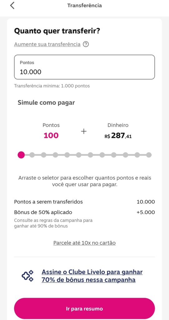 3º Click em Prazo da transferência 1 dia para você não ter que pagar taxa com pontos