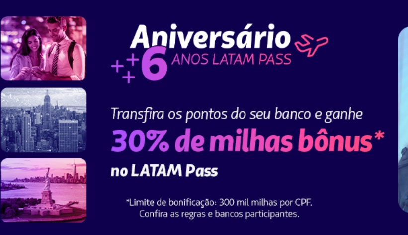 Transfira seus pontos dos bancos parceiros e ganhe 30% de milhas bônus, válidas por 36 meses