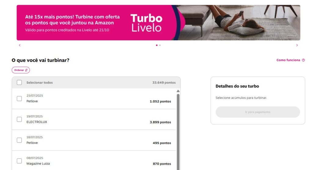 Como usar o Turbo Livelo no site