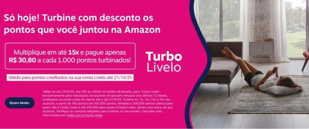 Só Hoje Livelo Turbo! Turbine com desconto os pontos Livelo