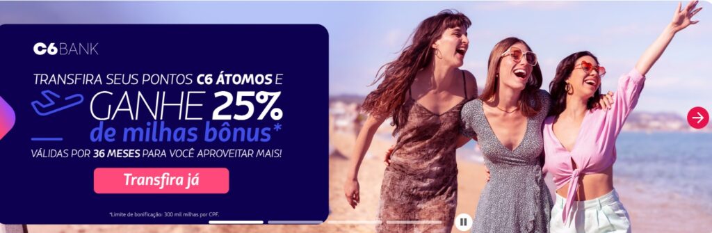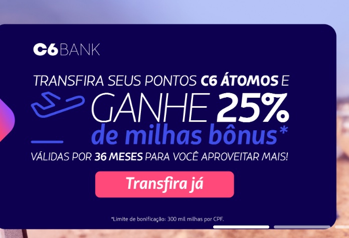 Transfira seus pontos C6 Átomos para o LATAM Pass e ganhe milhas bônus válidas