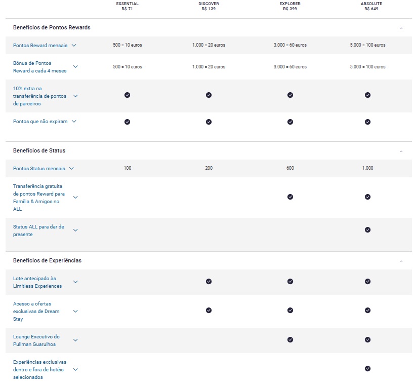 Com o programa de fidelidade ALL, você acumula pontos para aproveitar ainda mais a vida! Que tal ganhar desconto em hotéis com SPA, garantir acesso antecipado a shows internacionais, reservar uma mesa em um restaurante de luxo e muito mais?!