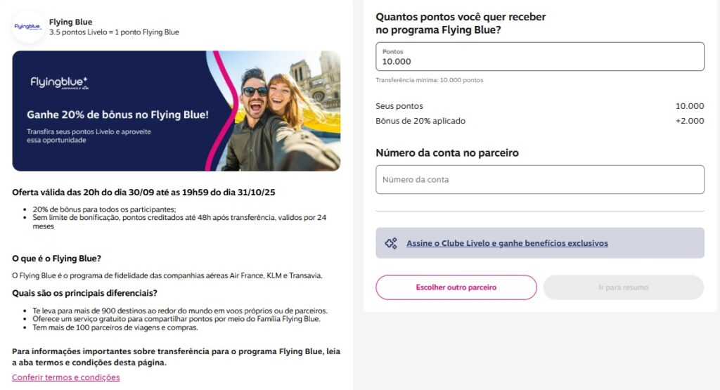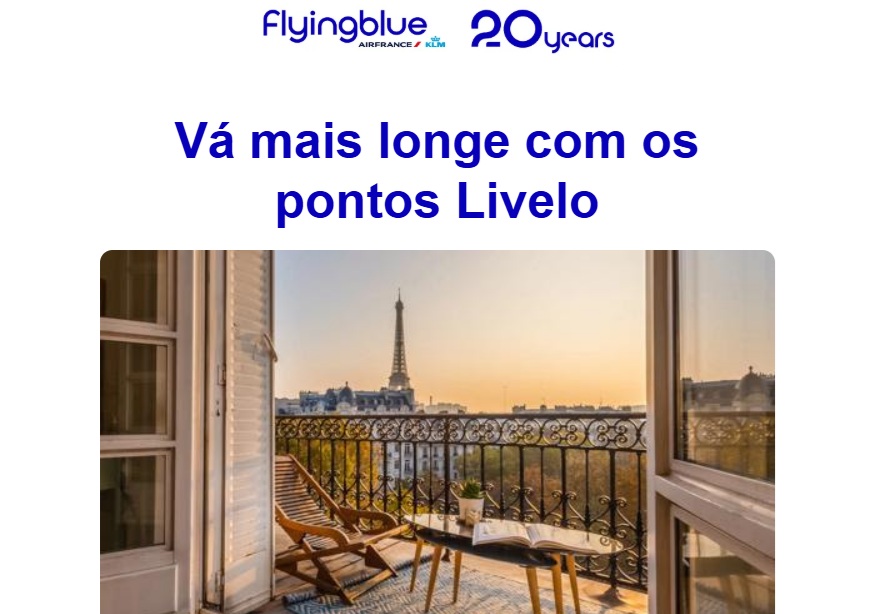 Flying Blue 3.5 pontos Livelo = 1 ponto Flying Blue