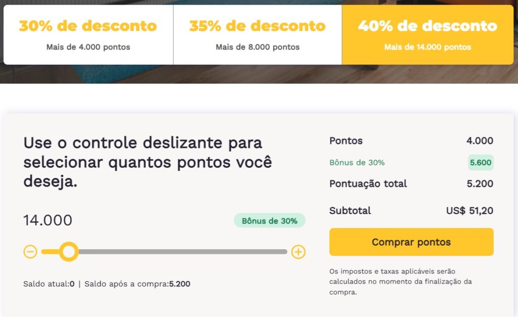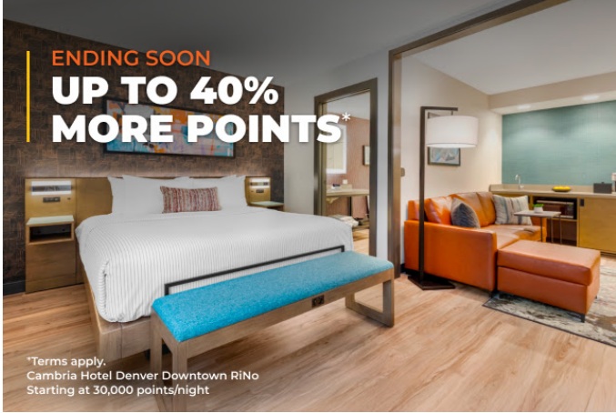As transações devem ser concluídas entre 0h (horário do leste dos EUA) de 2 de outubro de 2025 e 23h59 (horário do leste dos EUA) de 10 de novembro de 2025 para serem elegíveis para esta oferta de bônus de até 40%. Para compras de pontos entre 4.000 e 7.000, receba um bônus de 30%; para compras entre 8.000 e 13.000, receba um bônus de 35%; e para compras de 14.000 ou mais, receba um bônus de 40%. É necessário ser membro do programa Choice Privileges® Rewards.