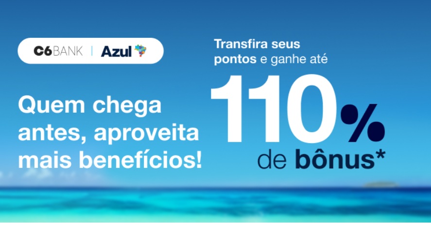 Transfira os pontos do C6Bank para Azul Fidelidade com até 110% de bônus