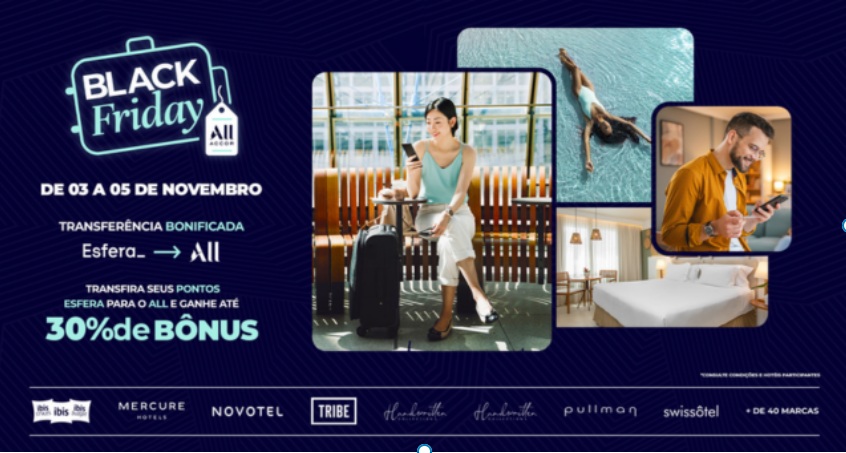 De 3 a 5 de novembro, transfira seus Pontos Esfera para o ALL Accor e garanta 30% de bônus exclusivo para assinantes ALL Signature!