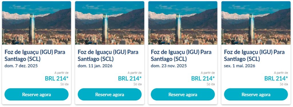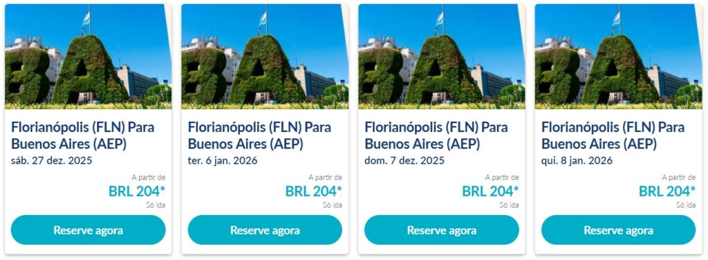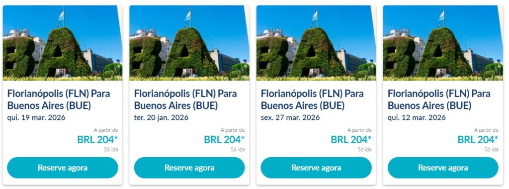 - Florianópolis ↔ Buenos Aires/Santiago: Para voar a partir de 25 de novembro de 2025 até 6 de abril de 2026.