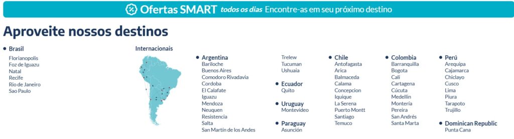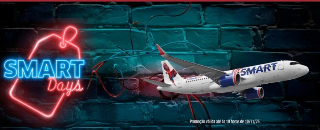 Para aproveitar as melhores tarifas, acesse o site oficial da JetSMART e procure o banner da promoção “SMART DAYS”.