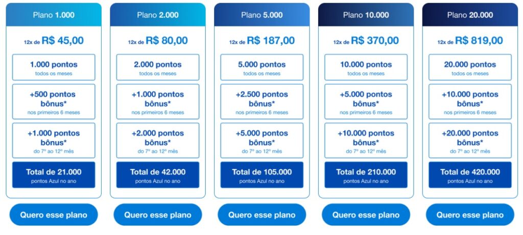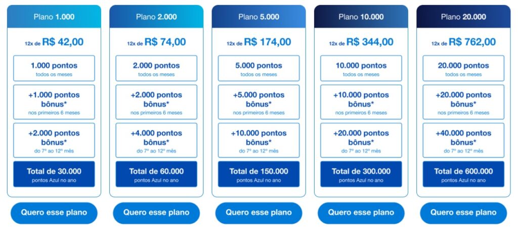 Escolha o seu plano e confira quantos pontos você pode acumular no ano: