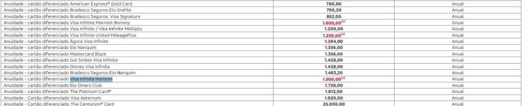 Anuidade de cada um já temos junto à tabela do Bradesco: