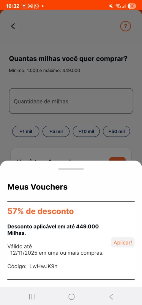 Demais clientes recebem 50% de milhas bônus sobre a quantidade de milhas compradas.