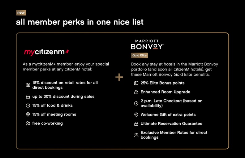 Oportunidade citizenM Status Matchs e benefícios Marriott Bonvoy® Gold Elite
