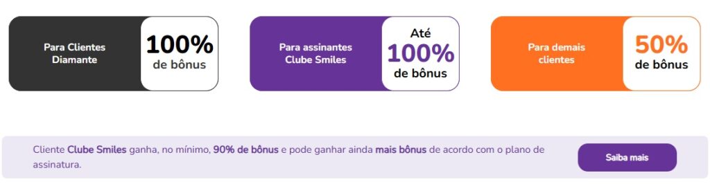 - Para ganhar o bônus correspondente nessa promoção e o bônus por Plano do Clube Smiles, os clientes assinantes do Clube Smiles precisam estar com a assinatura ativa antes de realizar a transferência dos pontos para a Smiles no período da promoção;