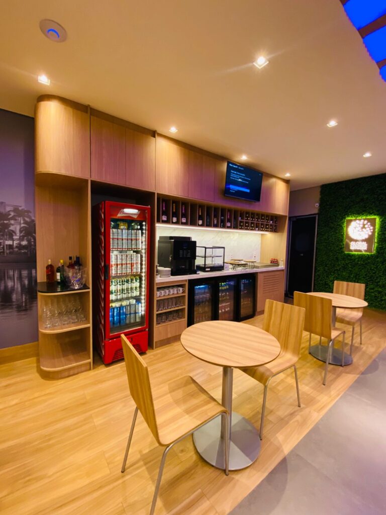 A sala possui 85 metros e conta com 45 lugares, oferecendo áreas de descanso, área de buffet, estação de café, business center e espaço kids. Assim como nas demais salas da GLN no Brasil os clientes também vão encontrar o menu a la carte através do Qr Code disposto nas mesas.