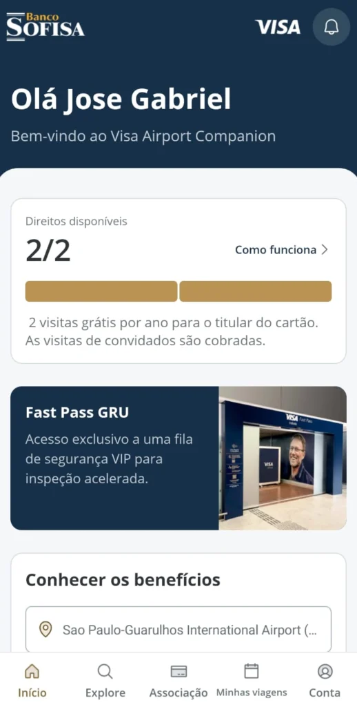 | Visa Airport Companion | 2 acessos gratuitos ao titular por ano |