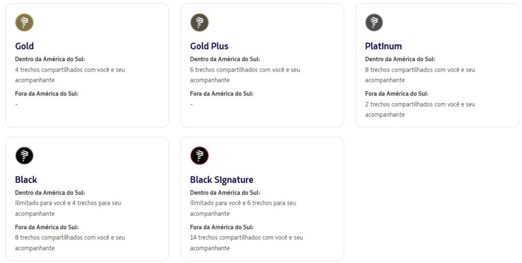 Contudo, é importante destacar que esses trechos concedidos pelo emissor do cartão de crédito não são cumulativos com os trechos já concedidos aos clientes LATAM Pass que fazem parte das nossas Categorias Elite.