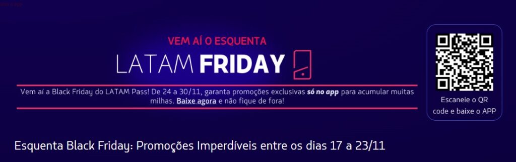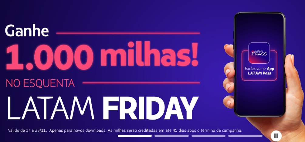 Esquenta Black FRIDAY! Baixe o app Latam Pass e ganhe 1.000 milhas de presente.