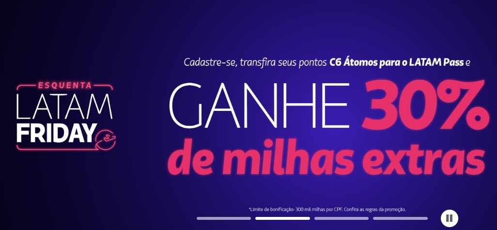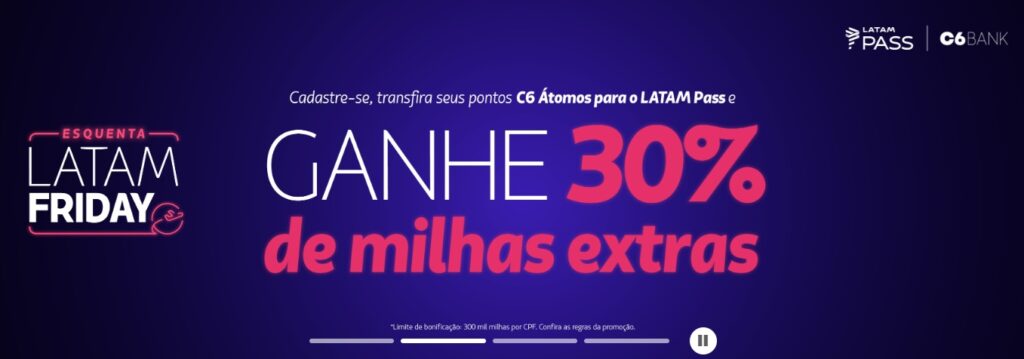 • Importante: Ative a promoção antes de transferir seus C6 Átomos para garantir as milhas bônus.