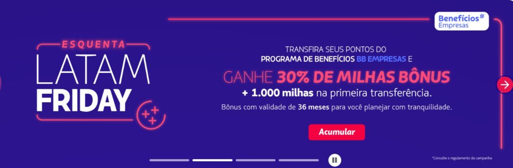 Quem pode participar: clientes que transferirem pontos do Programa de Benefícios BB Empresas para o LATAM Pass.