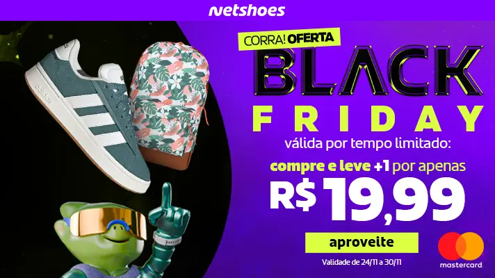 Aproveite a Black Friday Netshoes! Compre um produto da lista selecionada e leve outro por apenas R$19,99. Não perca essa oportunidade de economizar e renovar seu guarda-roupa esportivo! Oferta válida somente na lista de produtos selecionados e para produtos vendidos e entregues pela Netshoes. Oferta cumulativa com outros descontos. Não cumulativa com outros cupons.
