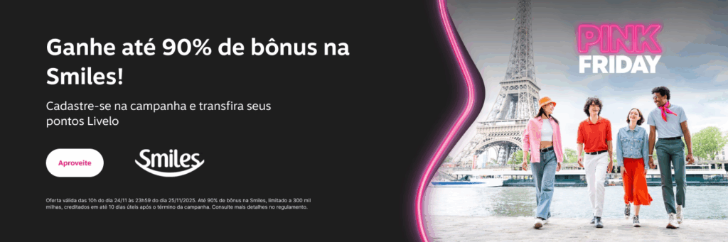 Barueri, 24 de novembro de 2025 – A Livelo, maior empresa de recompensas do Brasil, anuncia uma oferta imperdível para quem está planejando a próxima viagem: os clientes podem ganhar até 90% de pontos bônus ao transferir seus pontos Livelo para a Smiles, programa de fidelidade da Gol Linhas Aéreas. Na campanha, válida até as 23h59 de terça-feira (25/11), todos os clientes Livelo ganham 50% de bônus ao transferir seus pontos para a Smiles. Para assinantes do Clube Livelo, Clube Smiles ou clientes Smiles da categoria Diamante, a bonificação é ainda maior, podendo chegar a 90%.