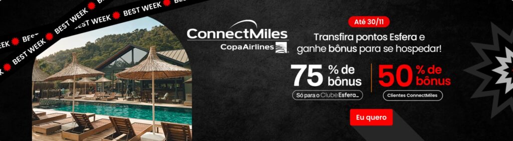 · Clientes ConnectMiles com Clube Esfera receberão mais 25% (vinte e cinco por cento) de Milhas Bônus.