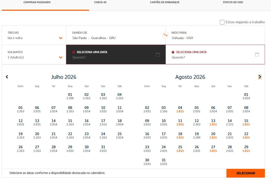 Detalhes dos Voos GOL para Ushuaia (Inverno 2026)