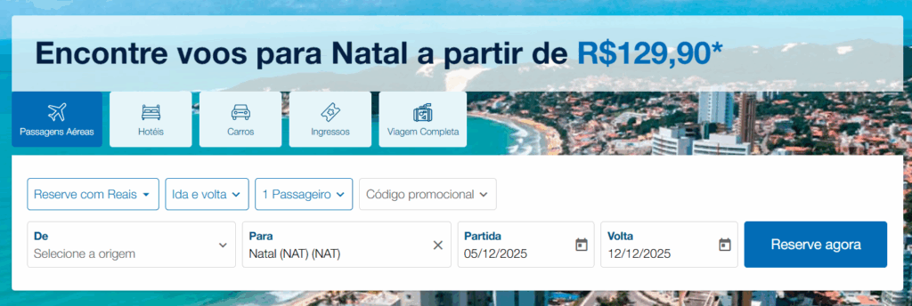 ALTA RENDA BLOG 2025 – A Azul acaba de divulgar uma das ofertas mais fortes do dia, trazendo dados oficiais da companhia sobre a tarifa promocional para Natal, que chega ao valor mínimo de R$ 129,90 até 23h59. Em uma movimentação típica das últimas horas da Azul Friday, a companhia reúne preços agressivos para quem deseja viajar ainda este ano ou já planeja suas férias para 2026. O destaque fica para Natal, destino reconhecido pelas praias marcantes, clima estável e experiências naturais únicas.