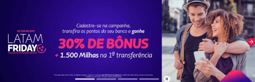 Campanha exclusiva no app LATAM Pass, válida de 26/11 às 10h até 30/11 (horário de Brasília).