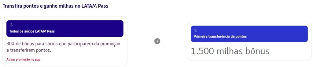 Se esta for a sua primeira transferência de pontos de um banco participante, você ganha mais 1.500 milhas bônus.