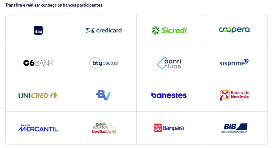 Confira se seu banco está na lista de participantes antes de iniciar a transferência.