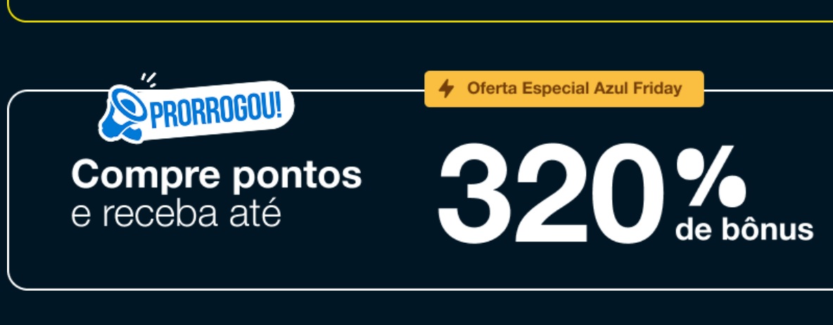 • 320% de bônus para clientes Clube Azul.