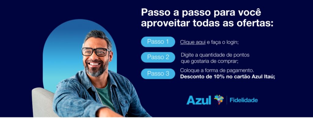 8. Para ser elegível ao desconto de 10% na compra de pontos, os clientes portadores dos cartões Azul Itaú devem inserir os dados do cartão como forma de pagamento através de nosso site ou informá-los durante a compra via Central de Atendimento. Benefício elegível aos portadores dos cartões nas categorias Internacional, Gold, Platinum, Infinite e Skyline.