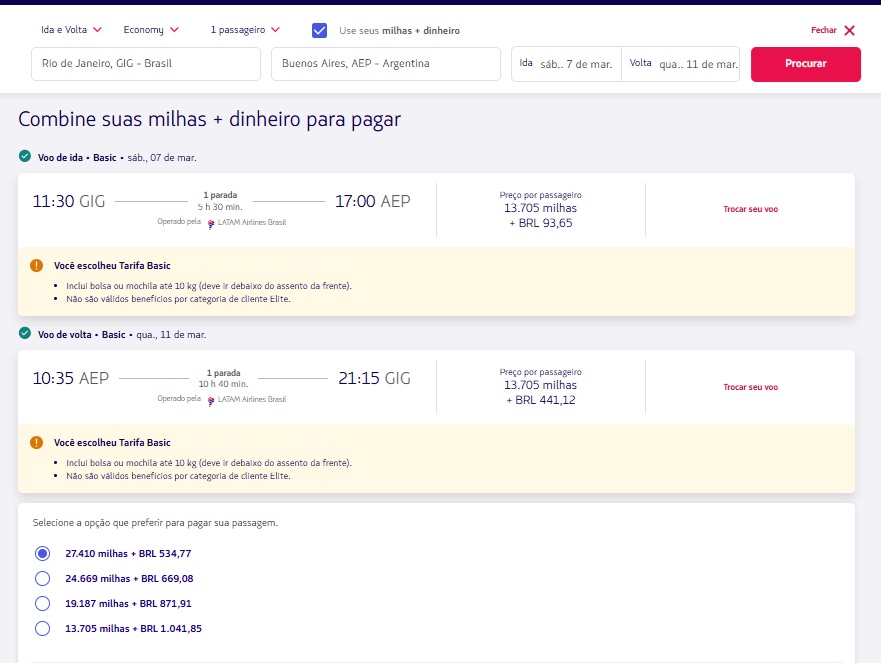 Milhas: 13.705 Ida e 13.705 Volta