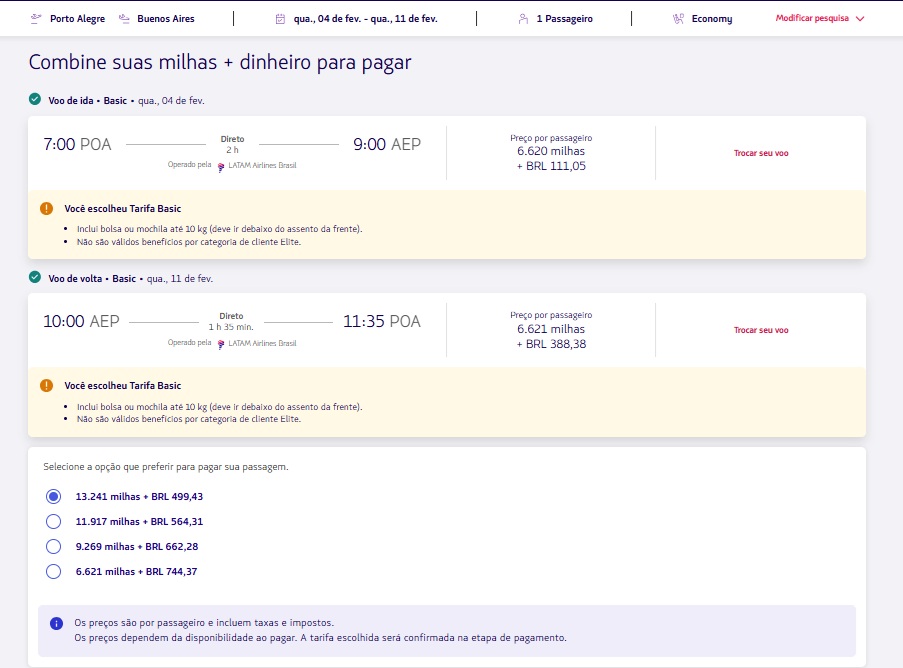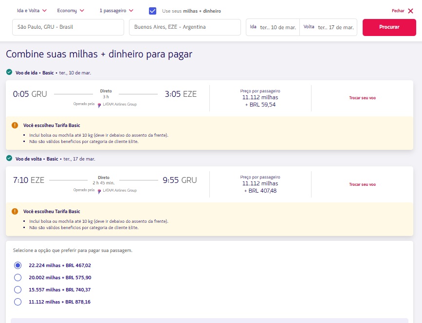 Origem:São Paulo GRU para Buenos Aires EZE