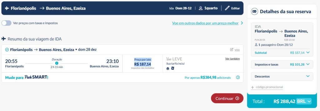 IDA Florianópolis para Buenos Aires, Ezeiza