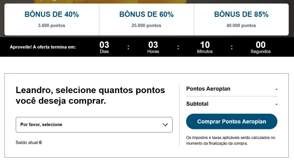 i. Os Pontos de Bônus concedidos por meio desta Oferta não contam para o limite transacional de Pontos Aeroplan que podem ser comprados por conta Aeroplan;