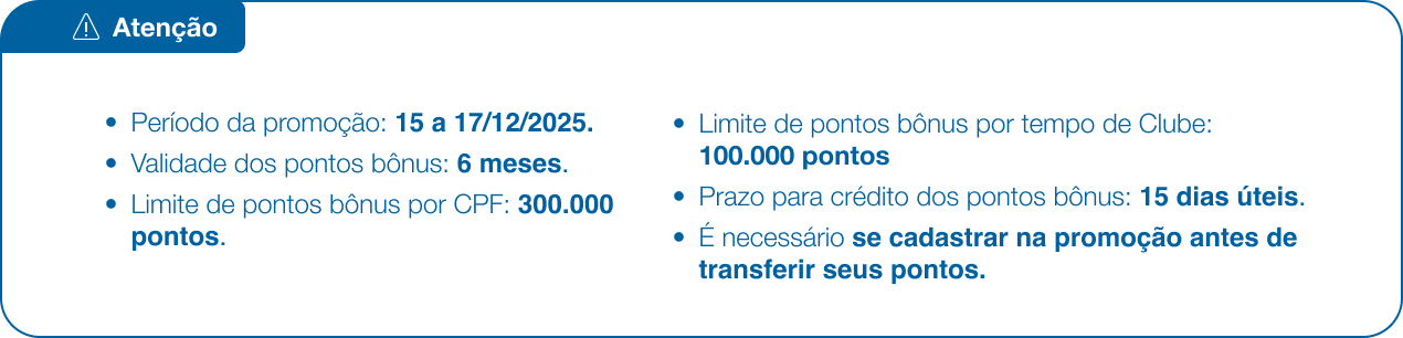 Após se cadastrar, transfira seus pontos até 17/12/2025.