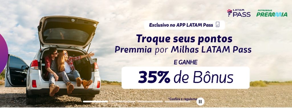 O programa de relacionamento dos Postos Petrobras chegou por aqui. Cadastre-se, acumule pontos Premmia ao abastecer, consumir nas lojas BR Mania ou trocar óleo no Lubrax+. Troque seus pontos por Milhas LATAM Pass e economize ainda mais em suas viagens.